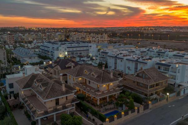 Objevte tuto exkluzivní a luxusní samostatně stojící vilu v žádané čtvrti La Veleta v Torrevieji. S 800 m² výstavby na stejně velkém pozemku nabízí tato nemovitost prostor, pohodlí a maximální luxus v každém detailu.