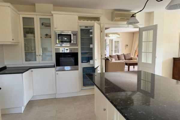 I stueetagen er der en elegant stue med pejs, fuldt udstyret køkken-spisestue, vaskerum, tre soveværelser og to komplette badeværelser.