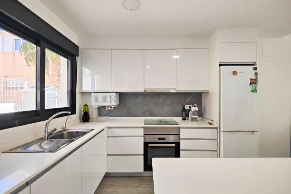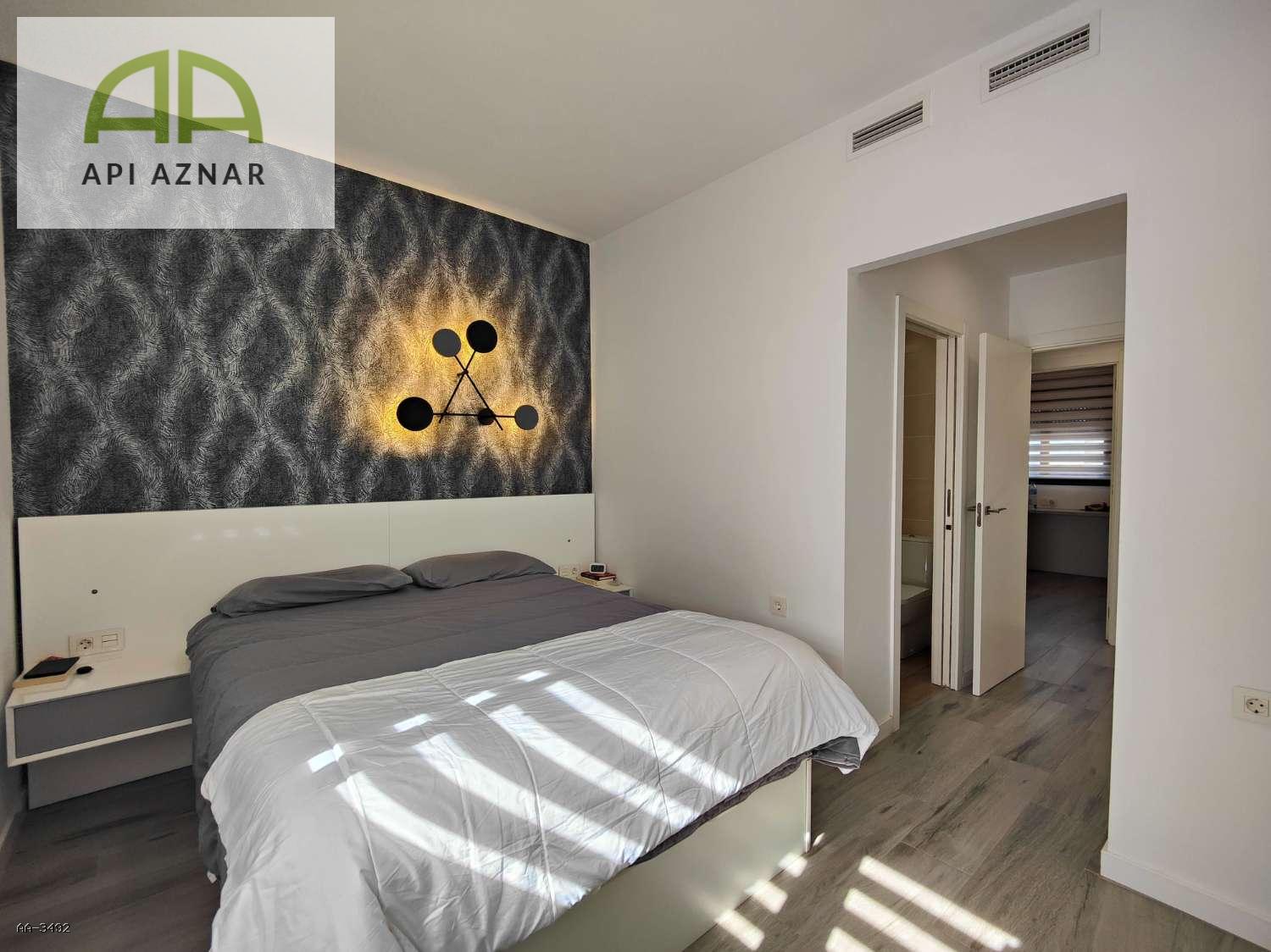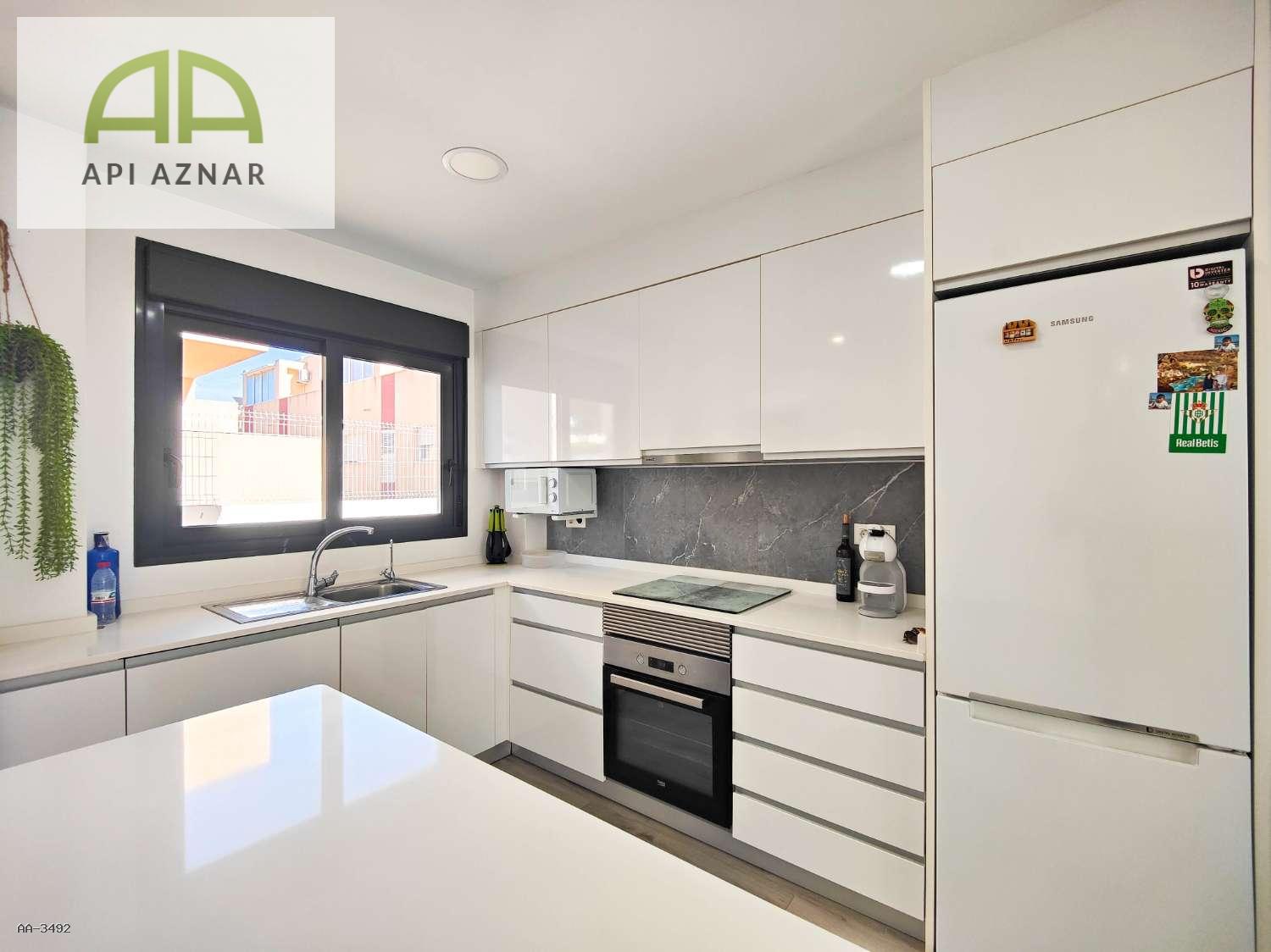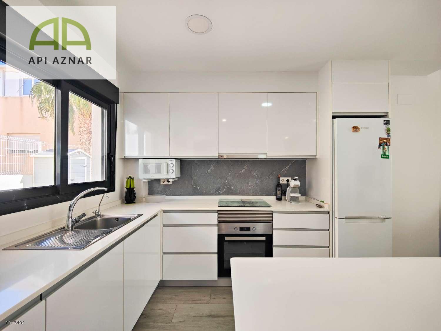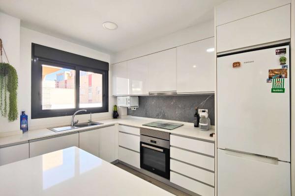 La cocina, de alta calidad, está equipada con encimera de Silestone y una elegante isla central, perfecta para cocinar y compartir momentos en familia o con amigos. El suelo porcelánico imitación madera aporta calidez y sofisticación a cada estancia. Además, el apartamento cuenta con aire acondicionado por conductos, garantizando una temperatura ideal durante todo el año. Se vende parcialmente amueblado.