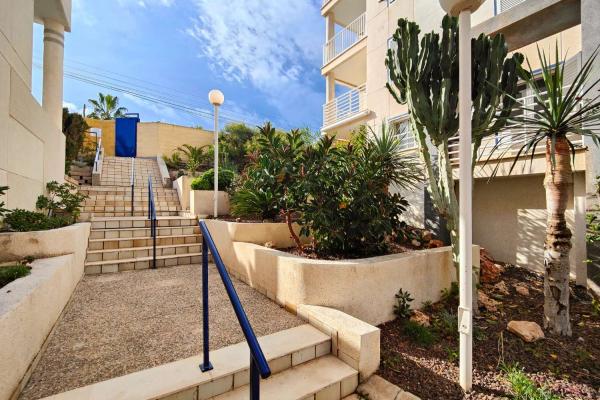 El residencial ofrece un entorno único, con piscina comunitaria rodeada de césped natural, palmeras y un estanque ornamental, creando un auténtico oasis mediterráneo. Dispone también de servicio de conserjería, aparcamiento comunitario, amplio solárium con vistas directas al mar y zonas comunes pensadas para el descanso y la convivencia.
