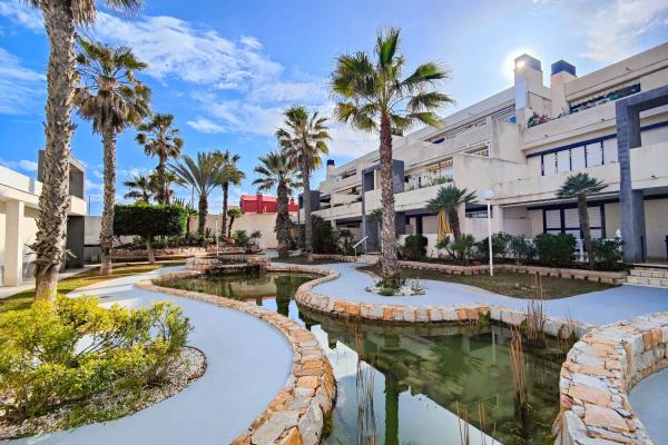 Exclusivo apartamento en planta baja, en esquina y con orientación sur, ubicado en un prestigioso residencial privado en primera línea de la playa de La Mata, una de las zonas más demandadas de Torrevieja.