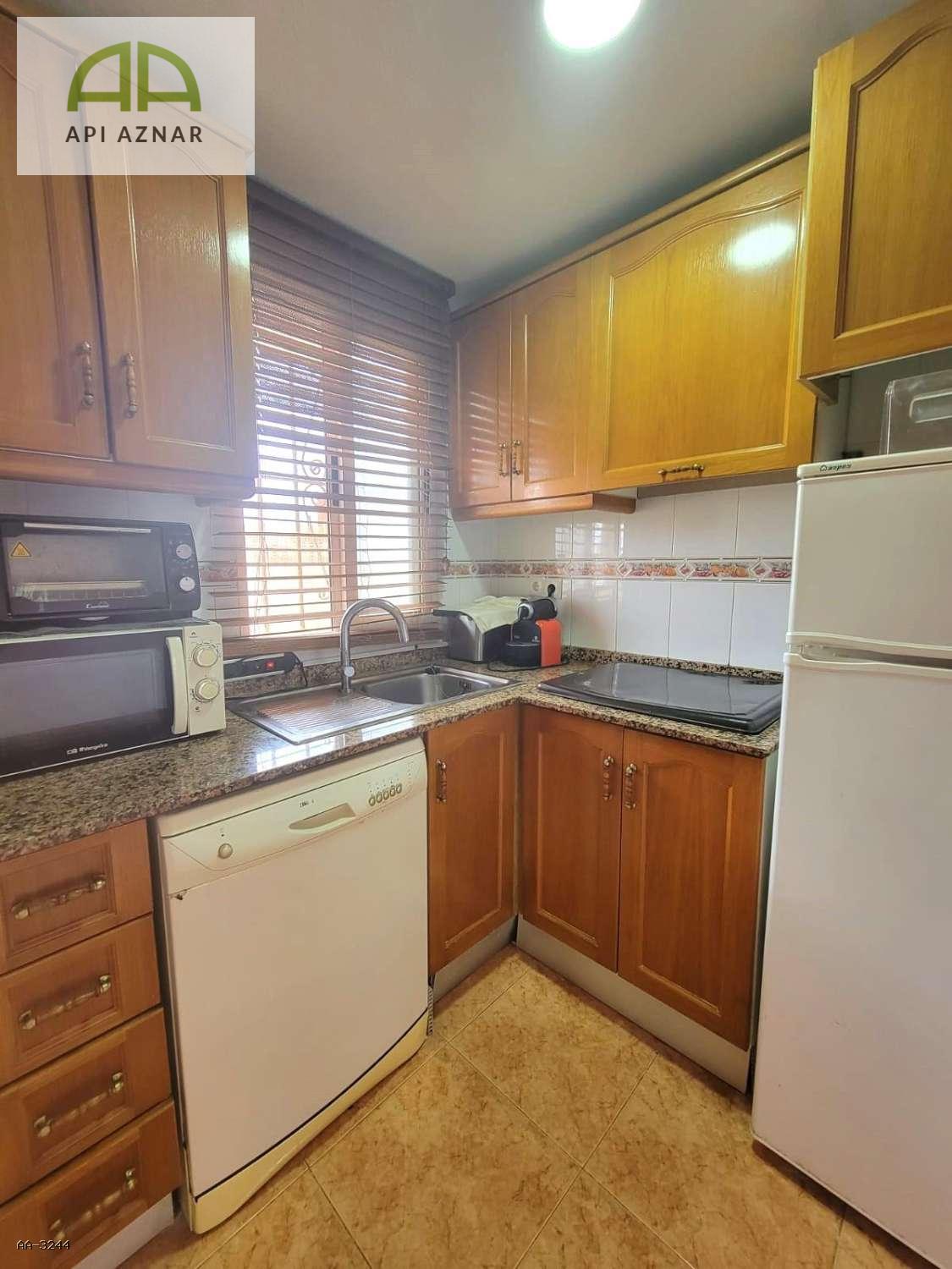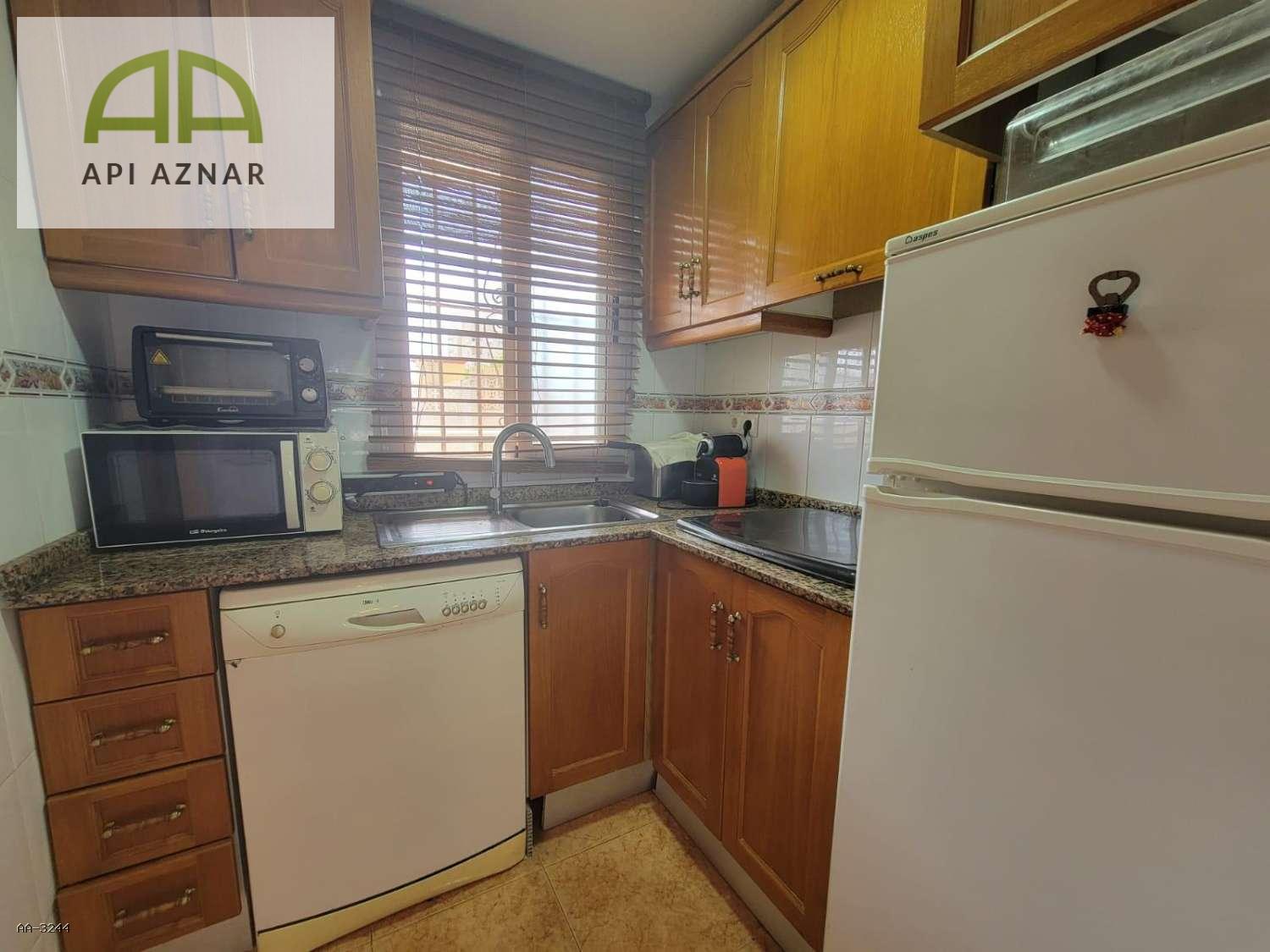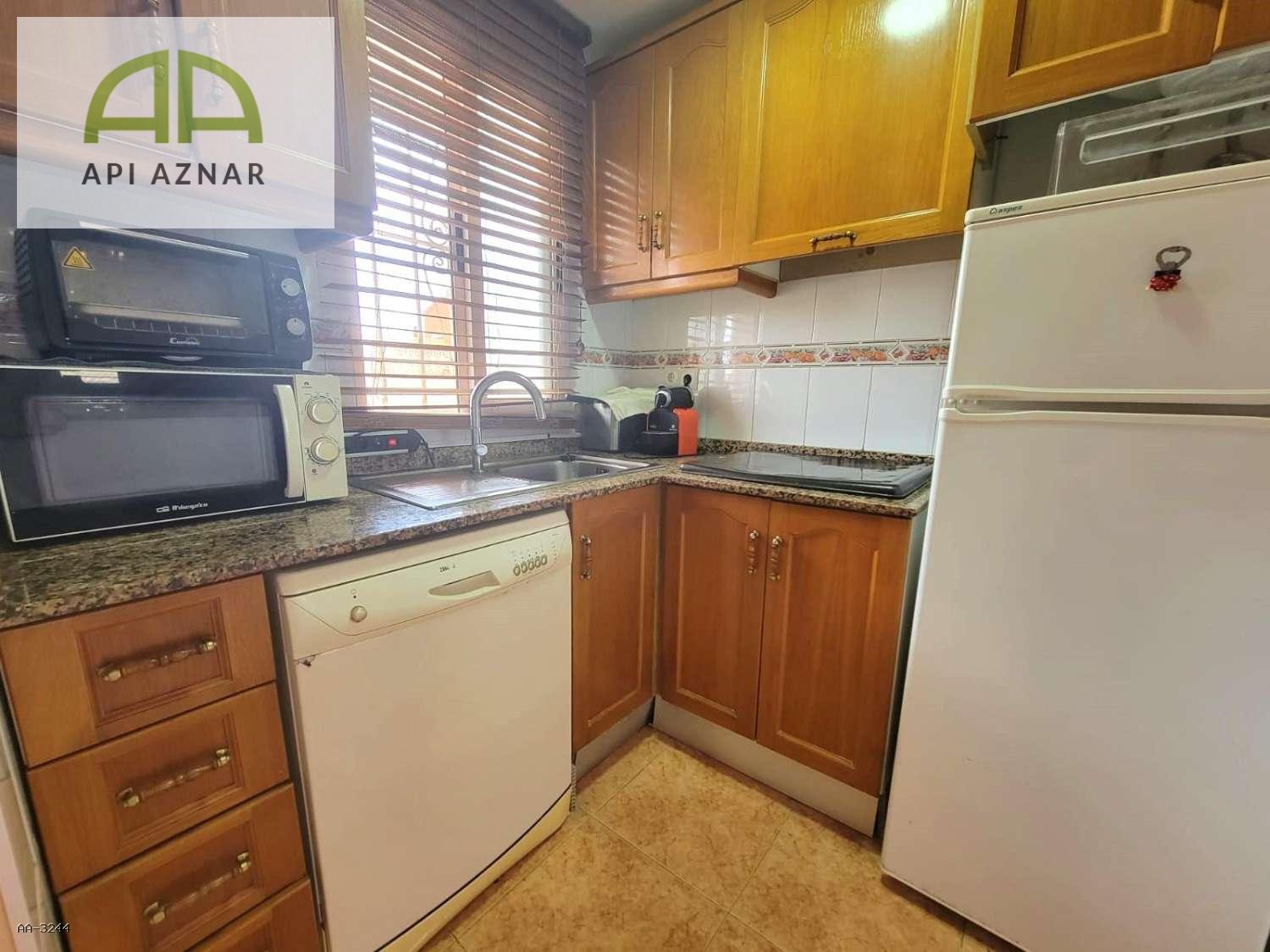 La vivienda cuenta con un luminoso salón-comedor que da acceso a una práctica terraza acristalada, ideal como espacio adicional para disfrutar durante todo el año. La cocina americana, totalmente equipada, se integra perfectamente en la zona de estar, optimizando el espacio y la comodidad.