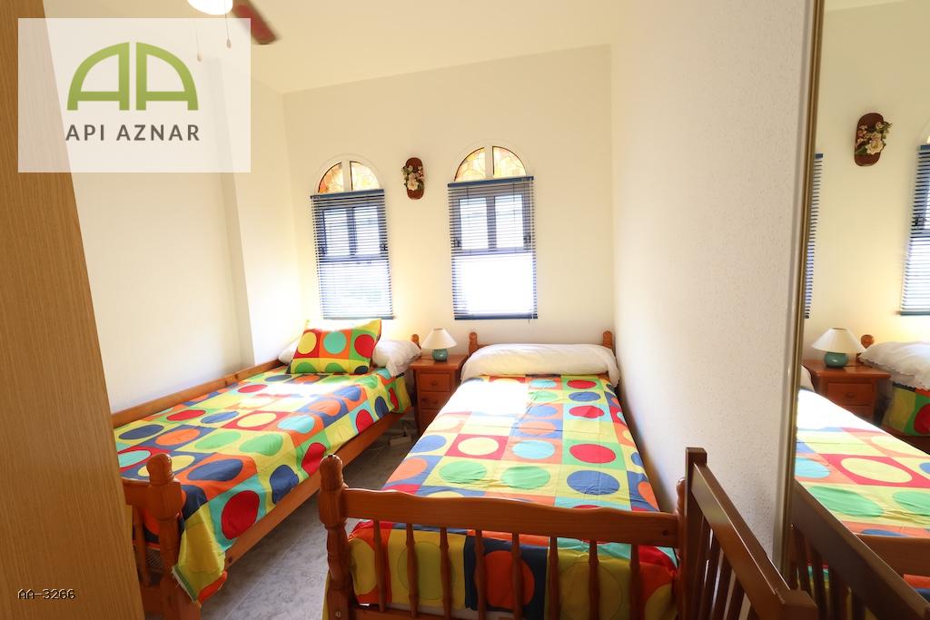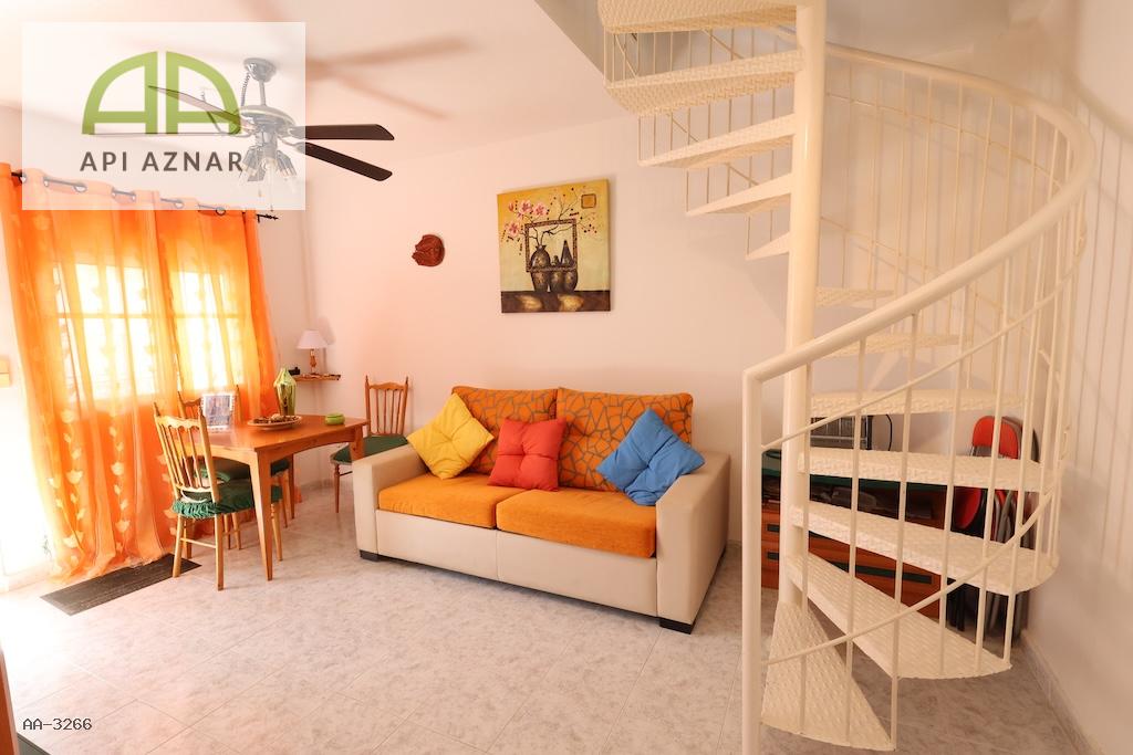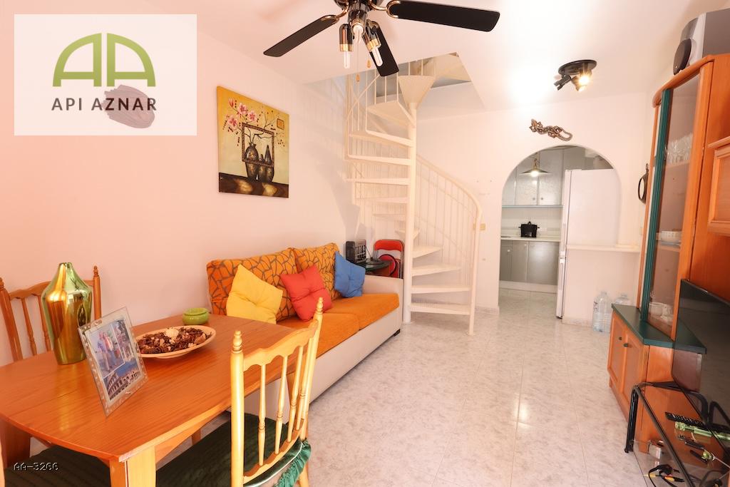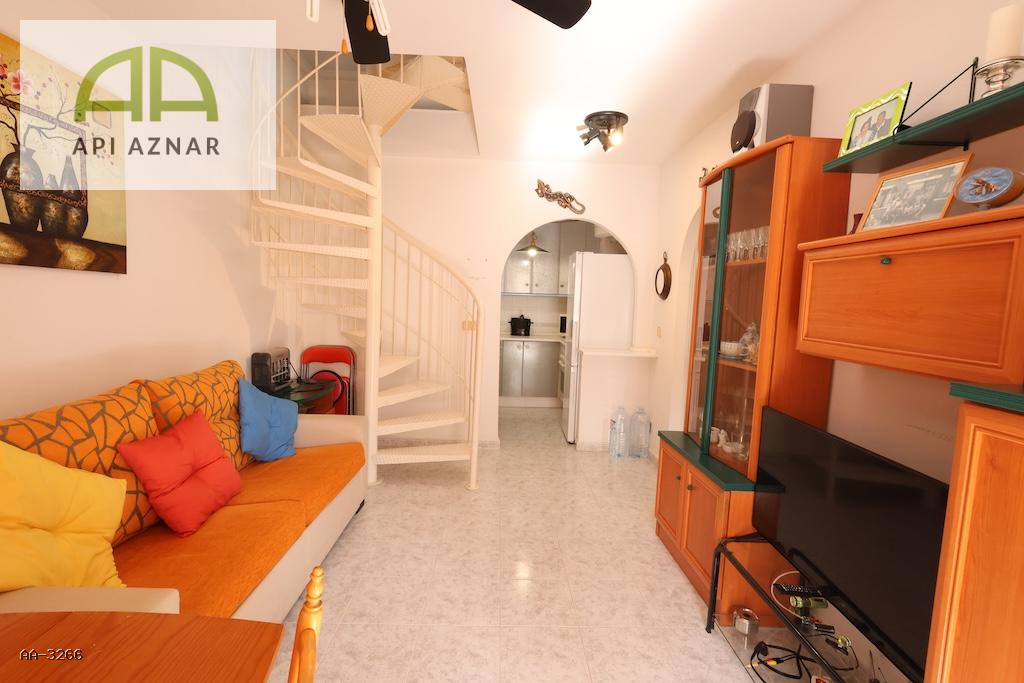 Acogedor bungalow en planta alta con orientación sur, ideal para disfrutar del sol durante todo el año. La vivienda, de aproximadamente 60 m², ofrece un ambiente luminoso y funcional, con 2 dormitorios dobles, 1 baño renovado con ducha moderna y una cocina de estilo abierto integrada en el salón-comedor, creando un espacio cómodo y práctico.