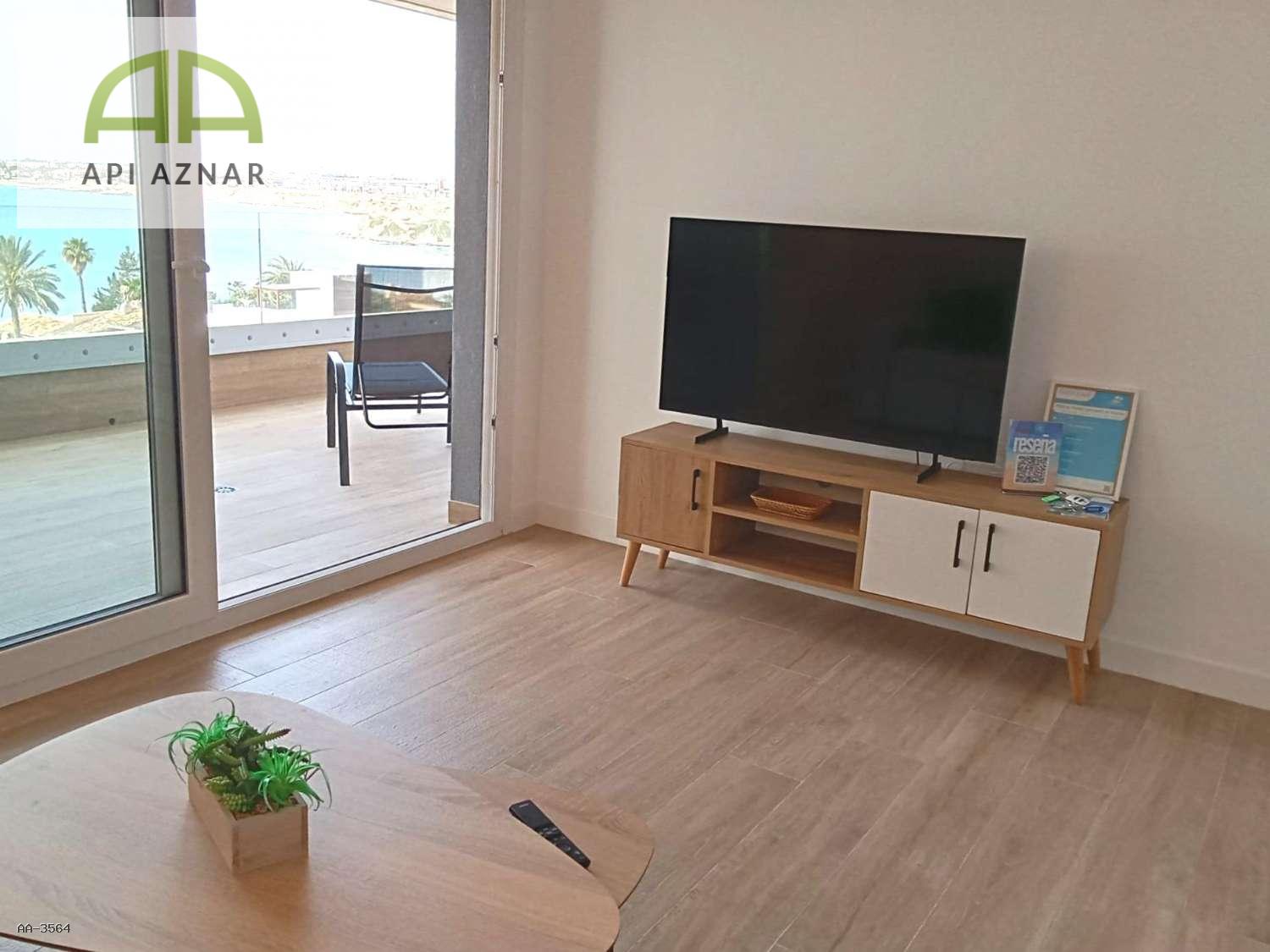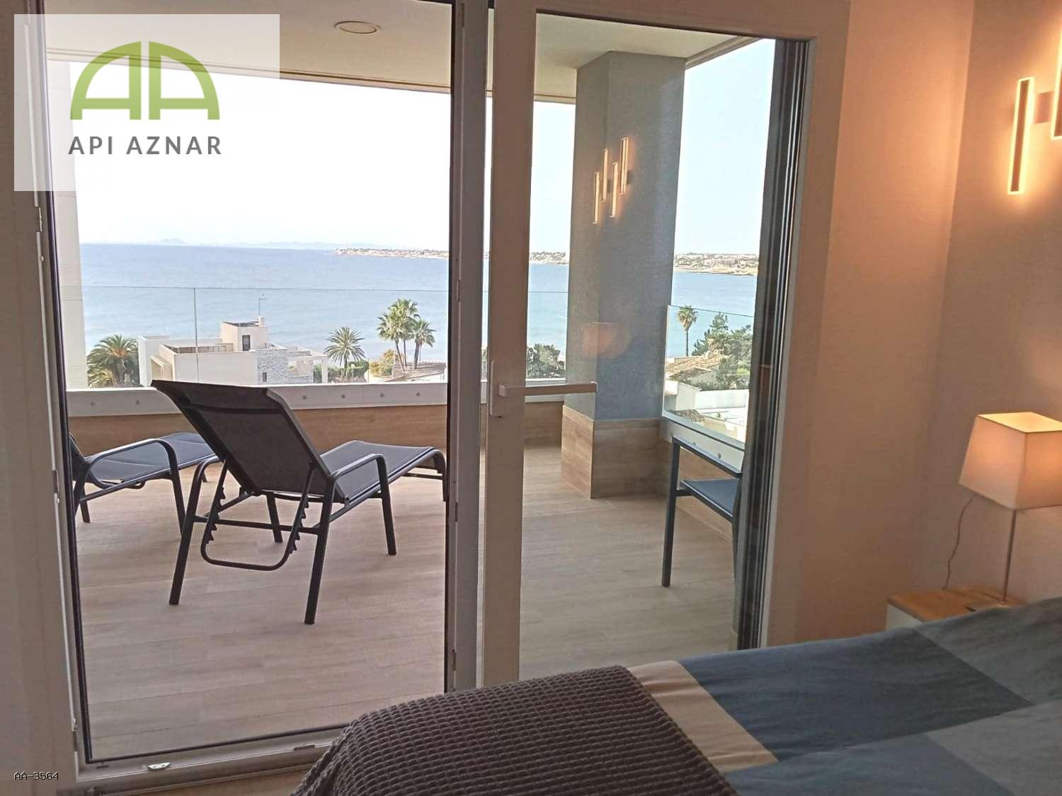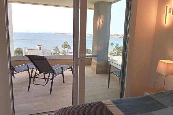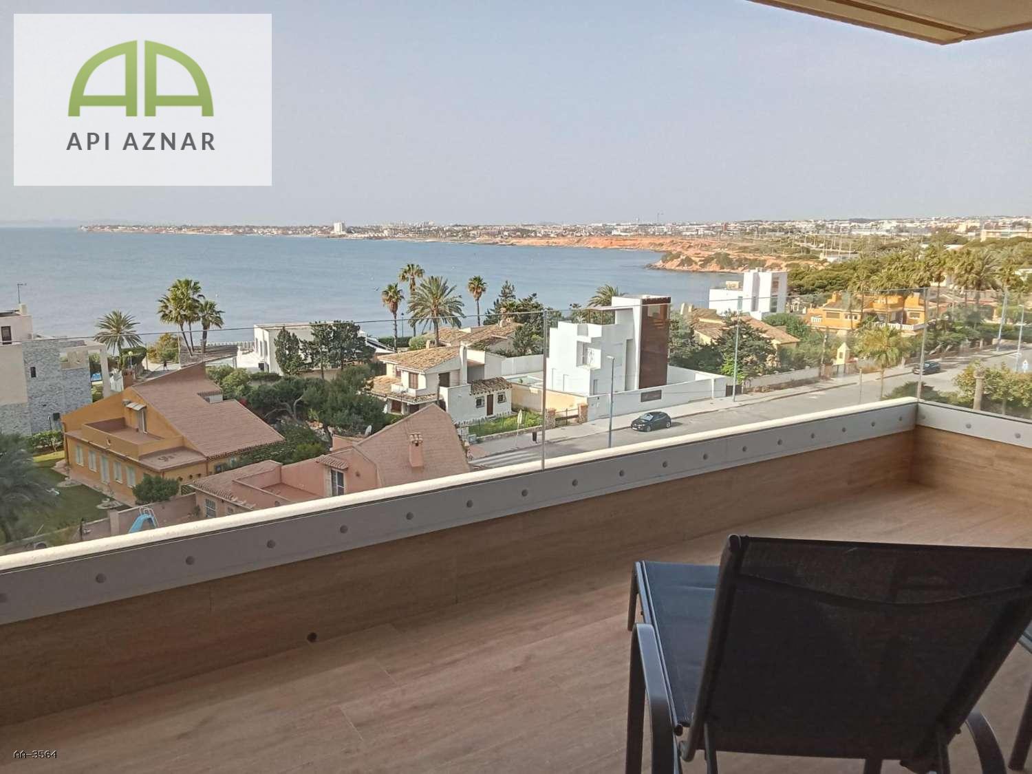 Presentamos esta magnífica vivienda situada en sexta planta, en un residencial de alto nivel en primera línea de mar en Punta Prima. Un apartamento que destaca por su diseño contemporáneo, excelente estado de conservación y espectaculares vistas frontales al Mediterráneo.