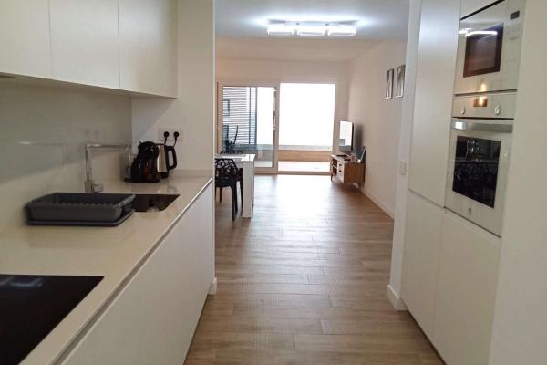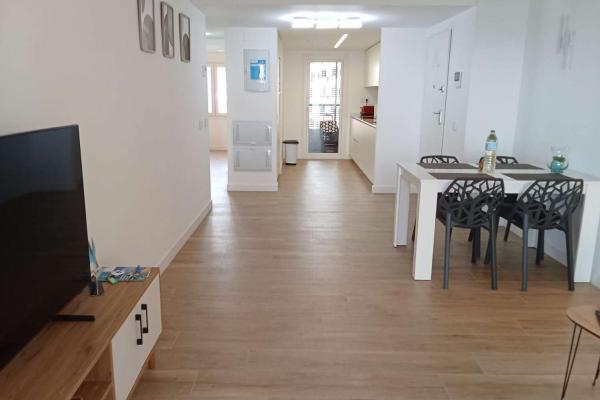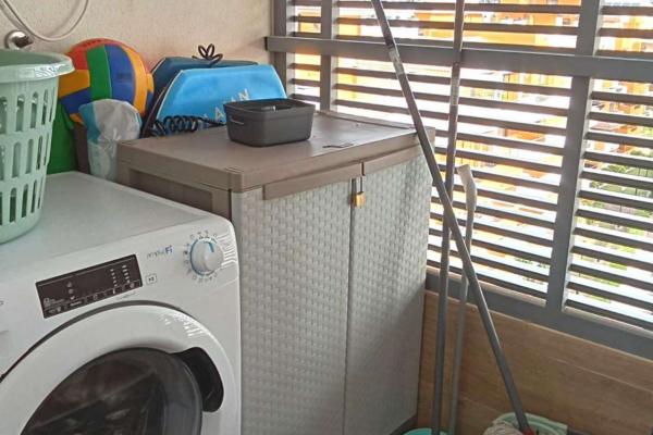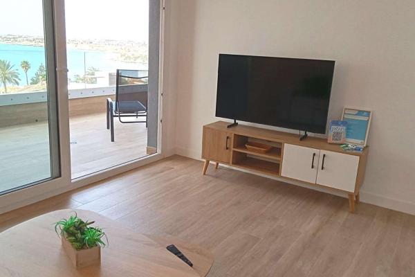 La propiedad ofrece un amplio y luminoso salón-comedor con salida directa a una gran terraza de aproximadamente 20 m², perfecta para disfrutar de las vistas abiertas al mar y del clima privilegiado de la zona durante todo el año. La cocina es independiente y está totalmente equipada, con acceso a una práctica zona de despensa/lavadero.