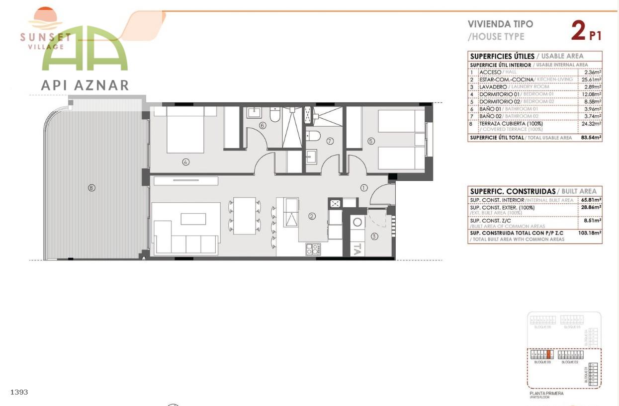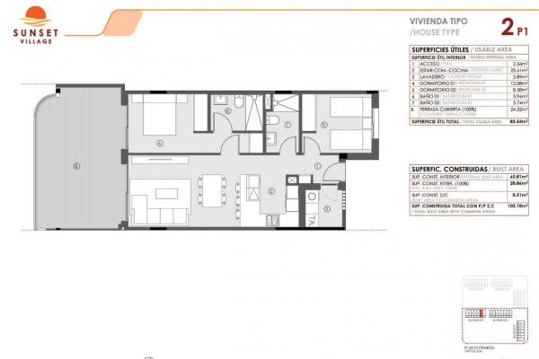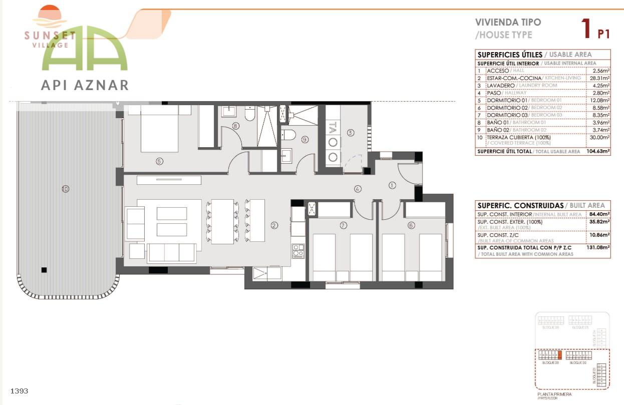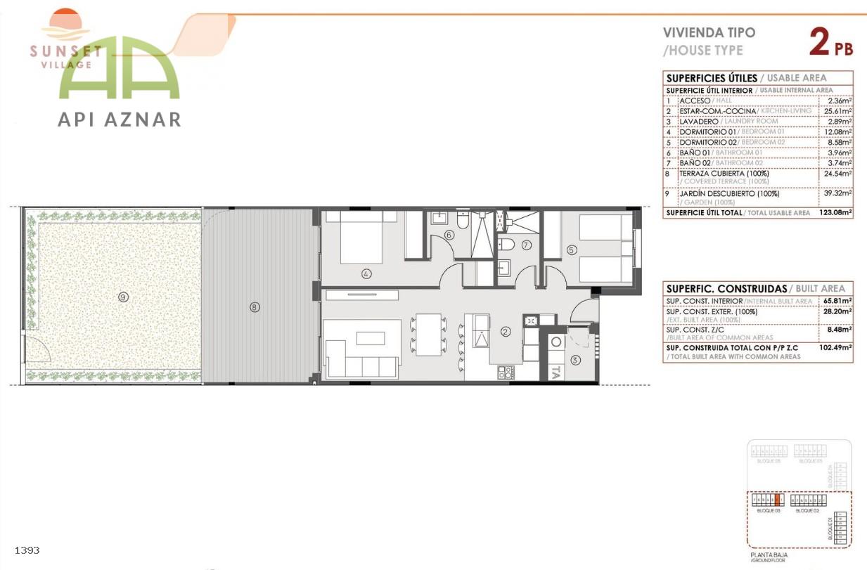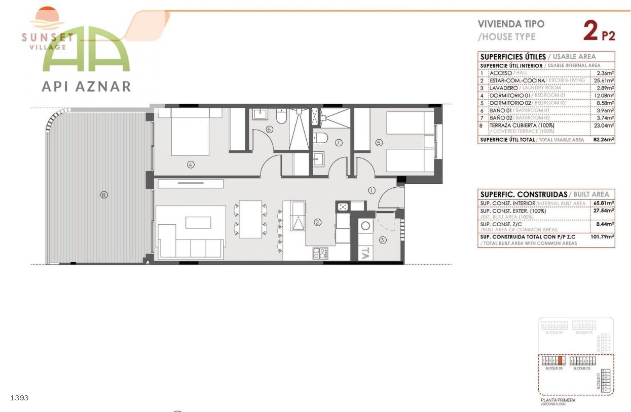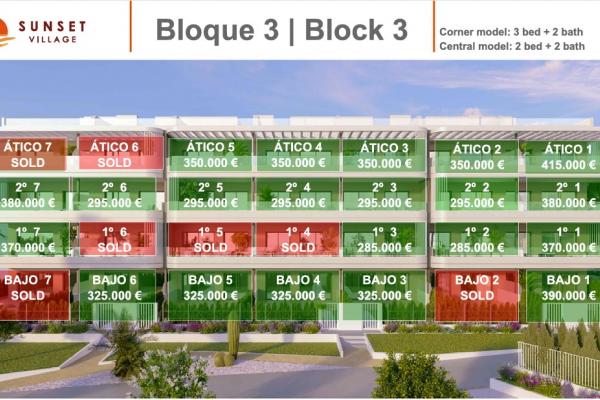 Las viviendas, de 2 y 3 dormitorios, disponen de dos baños completos y orientación sur/oeste, lo que garantiza luminosidad durante todo el día. La disposición de los bloques permite que todas las viviendas disfruten de vistas a las amplias zonas comunes.