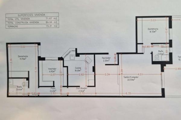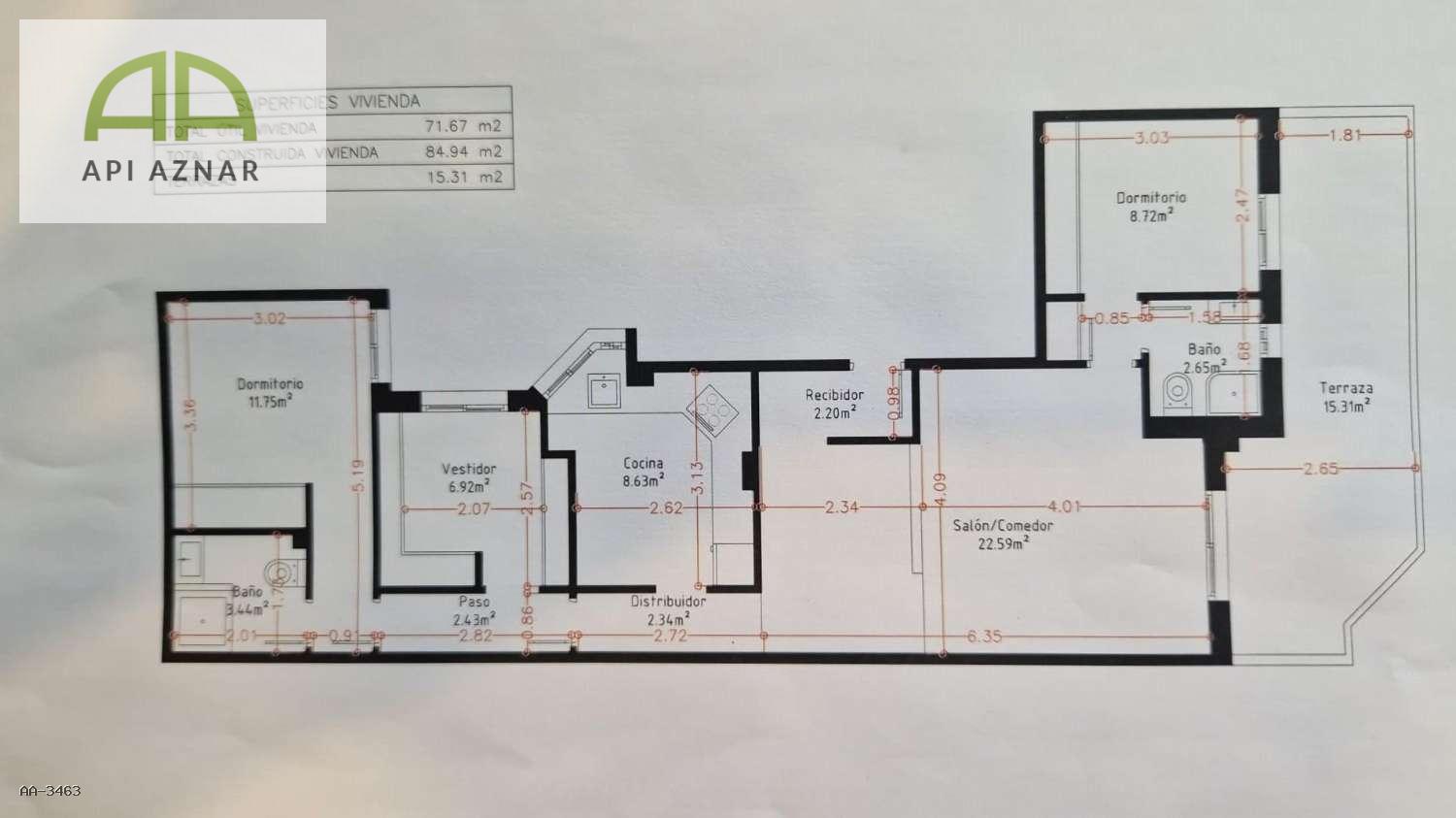 3 dormitorios con armarios empotrados (uno actualmente como vestidor con sofá cama).