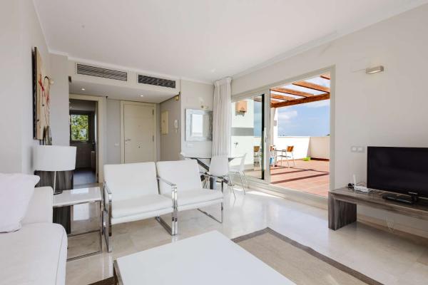 Su espectacular terraza de 37 m² es uno de sus grandes atractivos, perfecta para crear una zona chill-out, comedor exterior o espacio de relax, todo ello con agradables vistas al mar y al entorno natural que rodea el residencial.