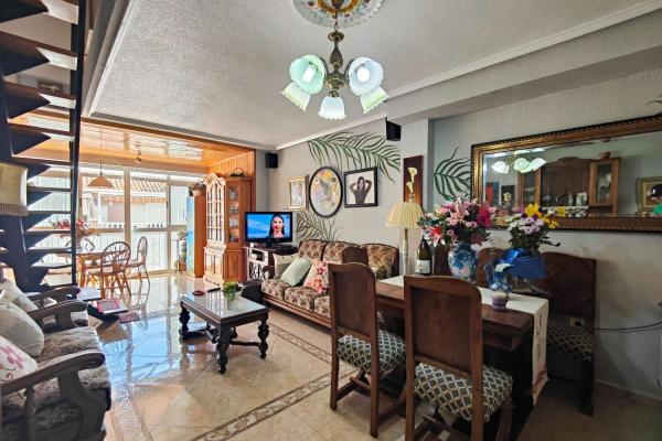 Amplio y luminoso ático dúplex de 3 dormitorios en venta en Playa del Cura, Torrevieja, ubicado a tan solo 250 metros de la Playa de los Locos y 600 metros de la Playa del Cura y del paseo marítimo. Situado en la quinta y última planta de un edificio con ascensor, y con orientación este, esta vivienda disfruta de abundante luz natural durante todo el día.