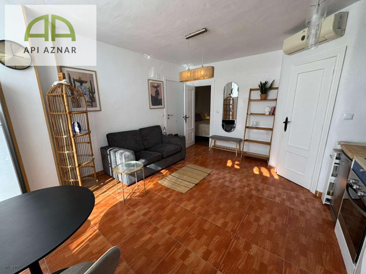 La propiedad, en buen estado, cuenta con 2 habitaciones cómodas y bien distribuidas, 1 baño completo y una moderna cocina abierta que se integra perfectamente con el salón, aportando amplitud y funcionalidad. Desde la vivienda se accede a una agradable terraza soleada, ideal para relajarte al aire libre o disfrutar de cenas al atardecer.