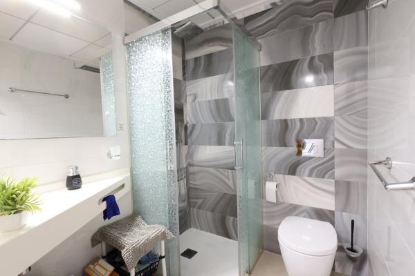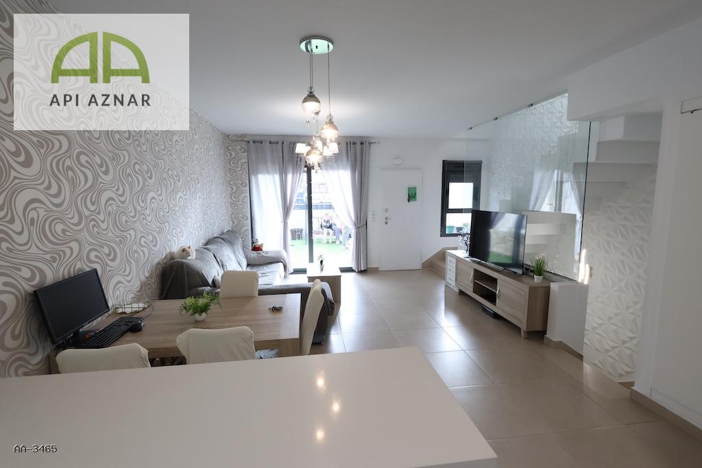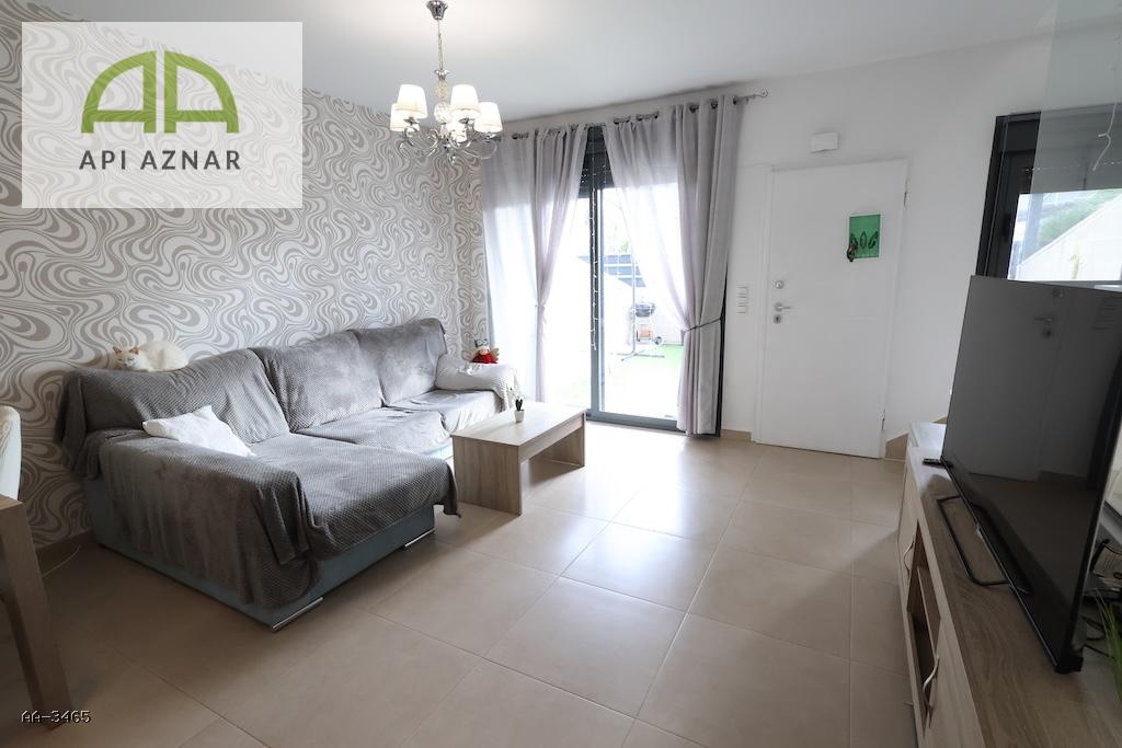 Dispone de 3 dormitorios, uno de ellos en planta baja, y 3 baños completos, lo que la convierte en una opción perfecta tanto para familias como para recibir invitados. El salón-comedor es luminoso y espacioso, con cocina abierta integrada y acceso a un patio trasero, ideal como zona auxiliar o de lavandería.