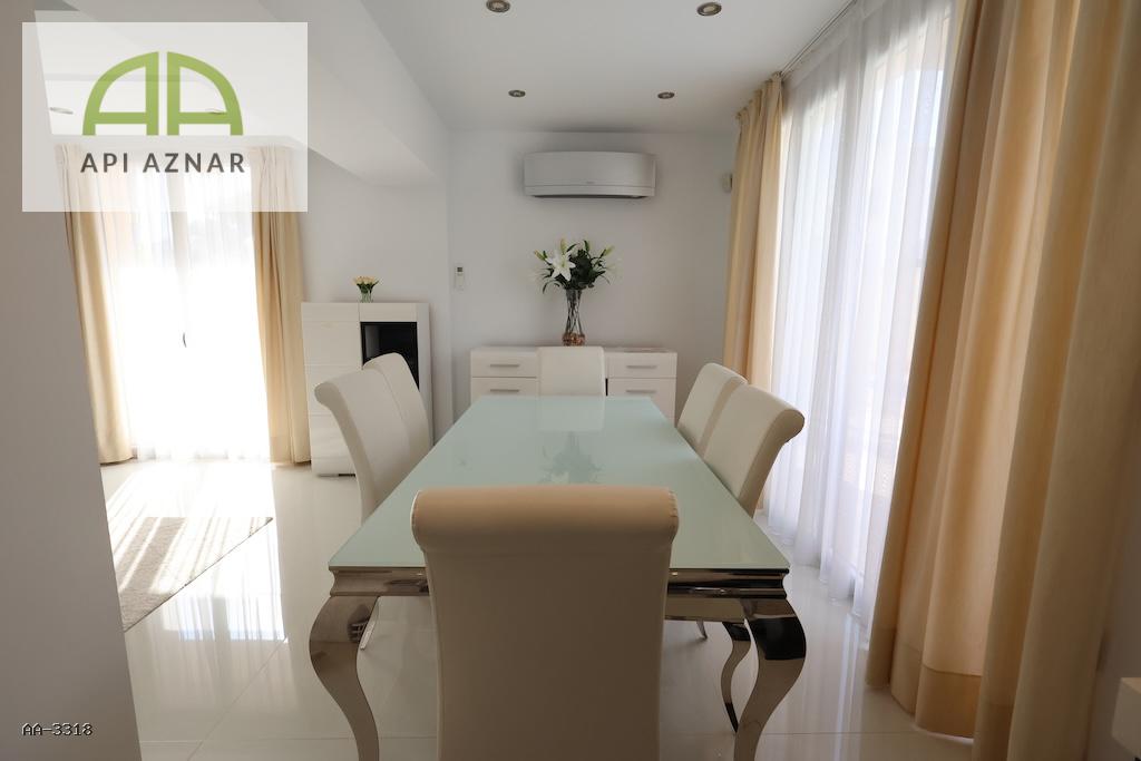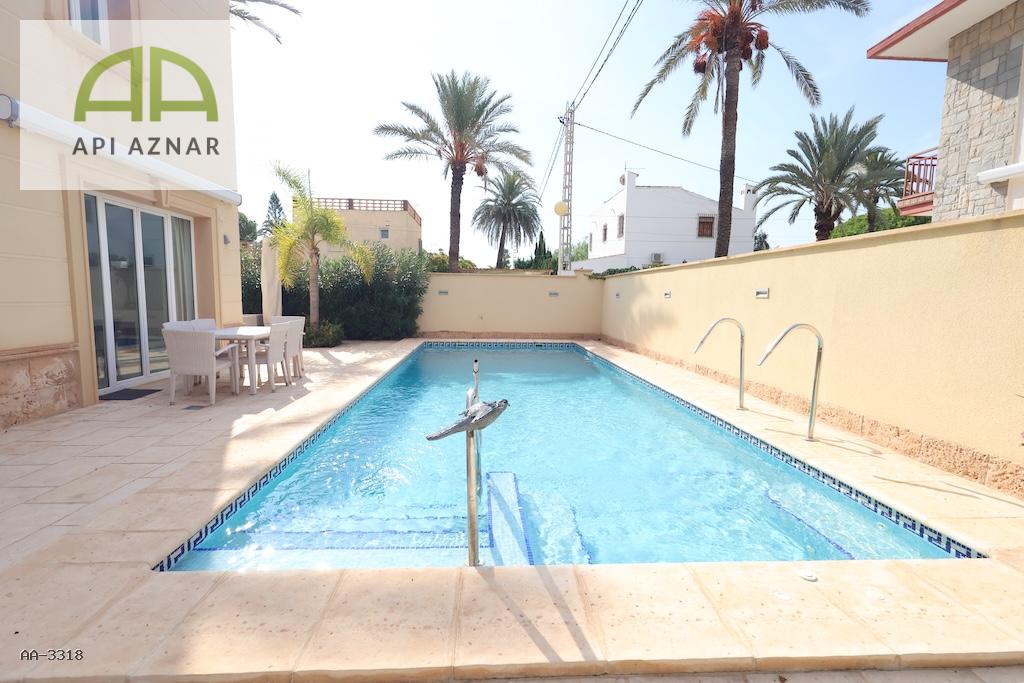 La casa dispone de 4 amplios dormitorios y 3 baños completos, un luminoso salón-comedor con cocina semi-integrada, y acceso directo al exterior. En la zona exterior, podrás disfrutar de una piscina privada, entrada para vehículo y un gran solárium privado, perfecto para aprovechar el sol durante todo el año.