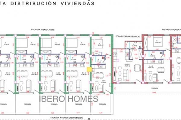 El proyecto contempla la división en 8 apartamentos de aproximadamente 42 m², todos con acceso directo a zonas comunes y piscina.