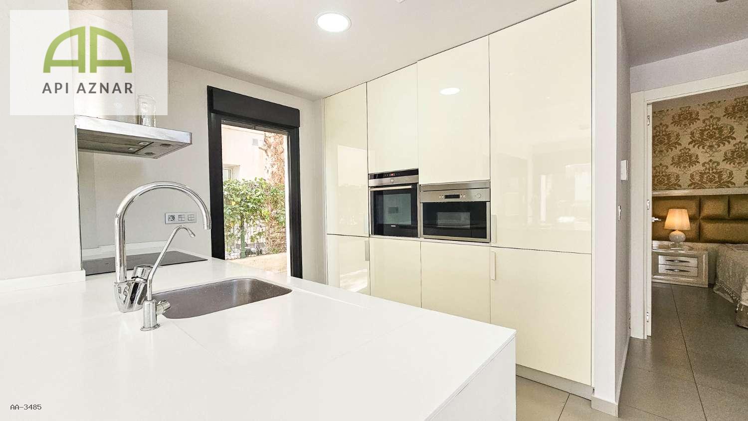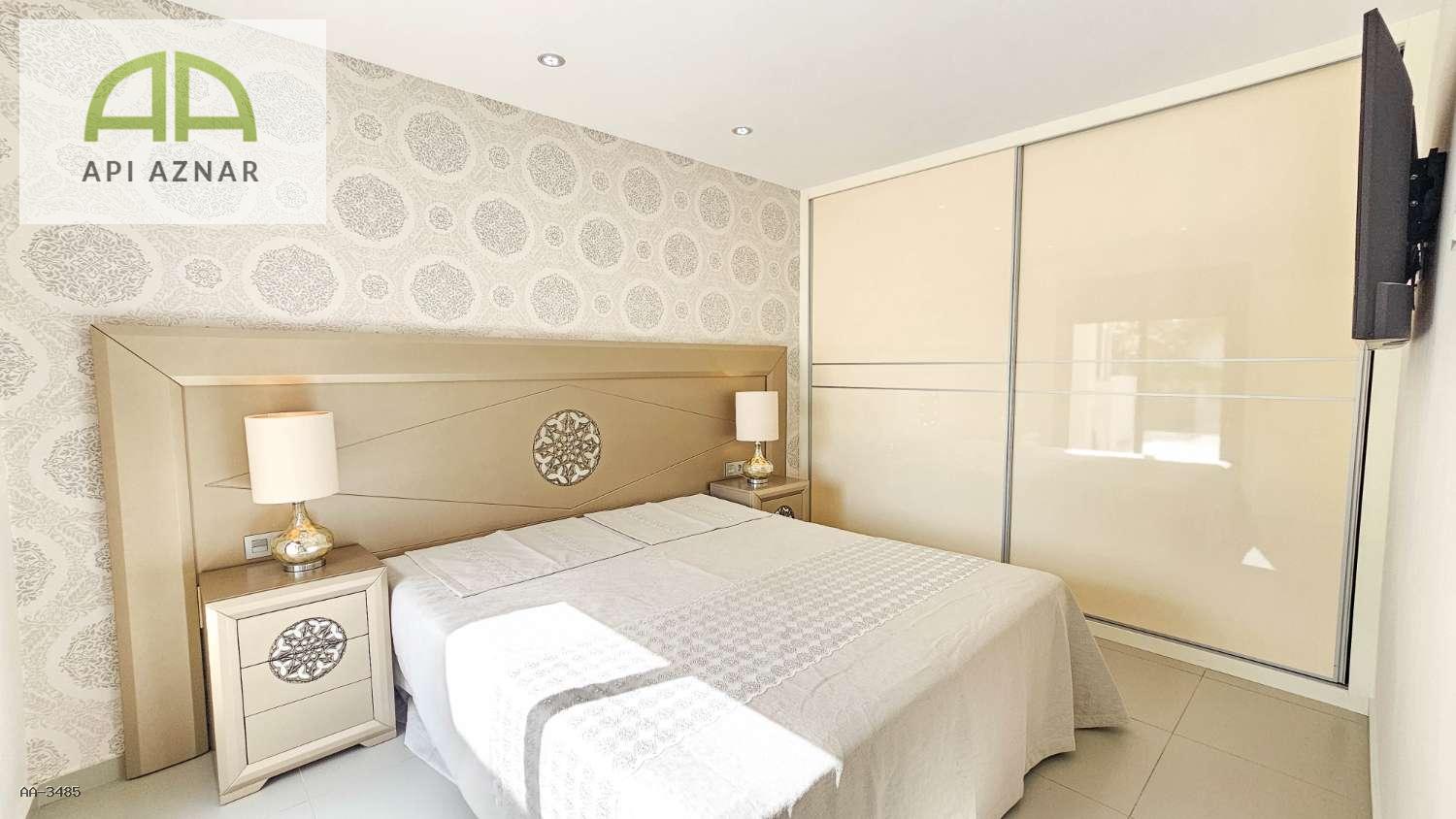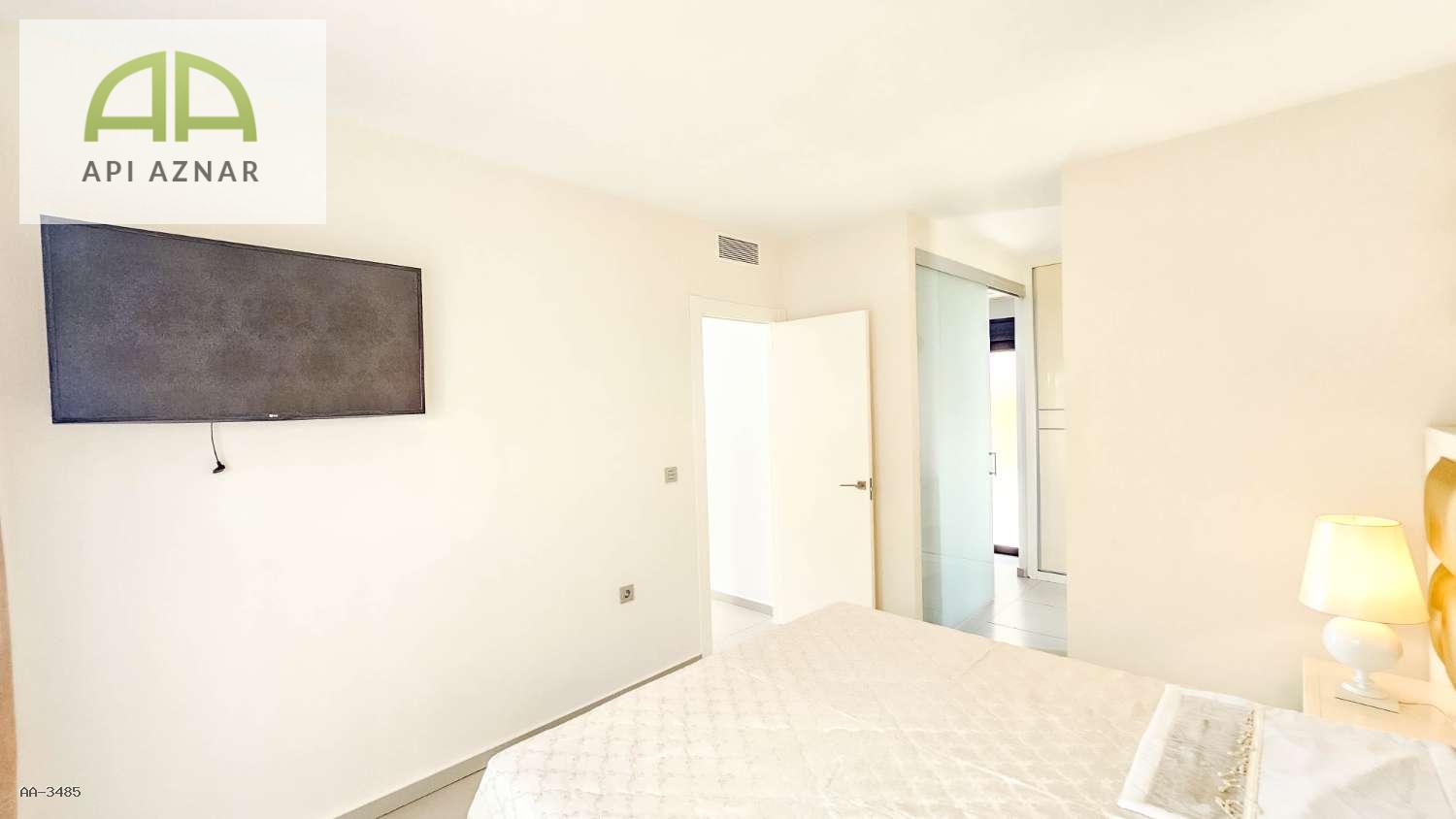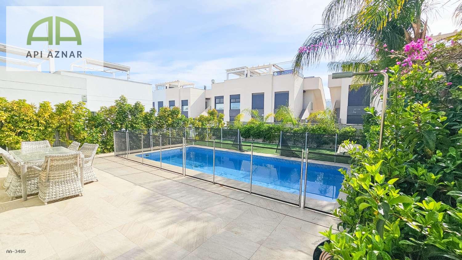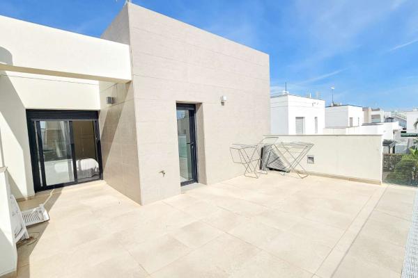 Distribuida en dos plantas, cuenta con un amplio salón-comedor con cocina abierta totalmente equipada, 3 dormitorios (uno en planta baja con vestidor), 2 baños completos y 1 aseo. En la planta superior, los dormitorios tienen acceso a terraza privada y conexión a un gran solárium ideal para disfrutar del sol todo el año.