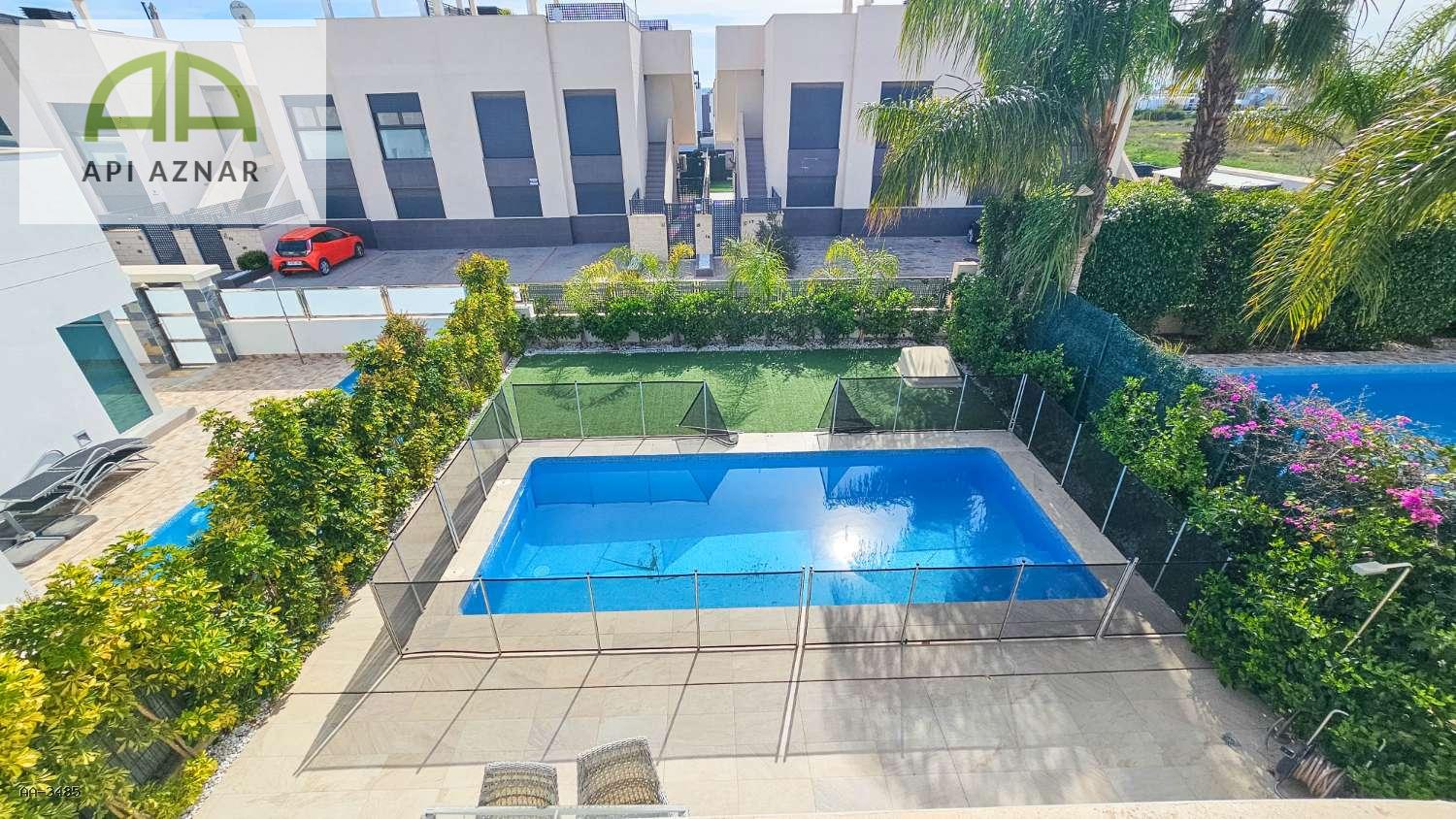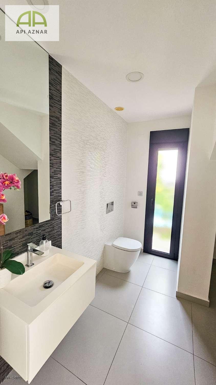 Equipada con aire acondicionado central, suelo radiante y vendida completamente amueblada. El exterior destaca por su piscina privada, zonas de descanso y aparcamiento dentro de la parcela.