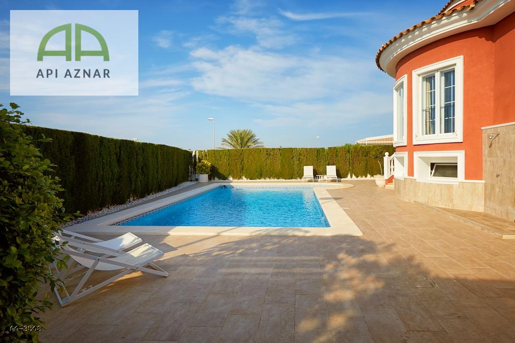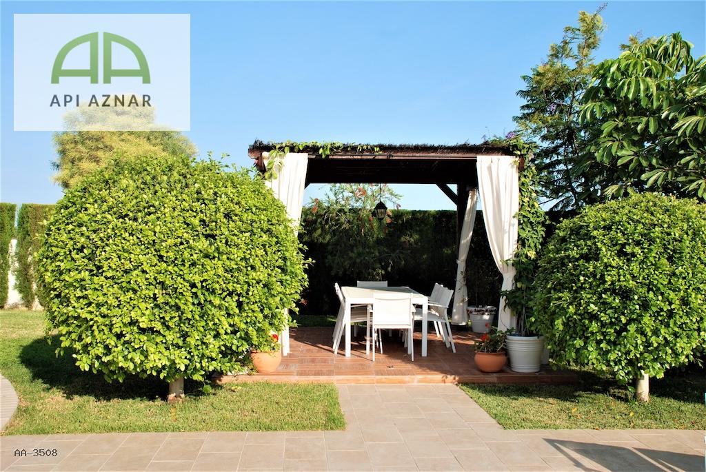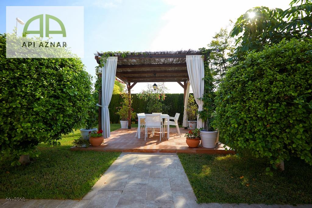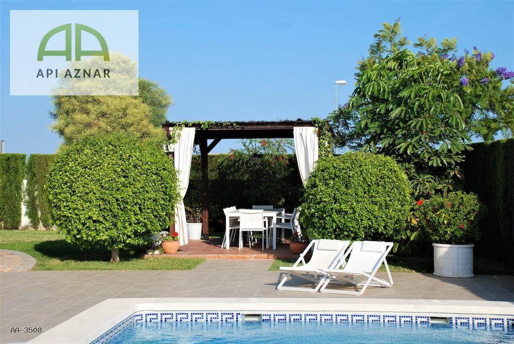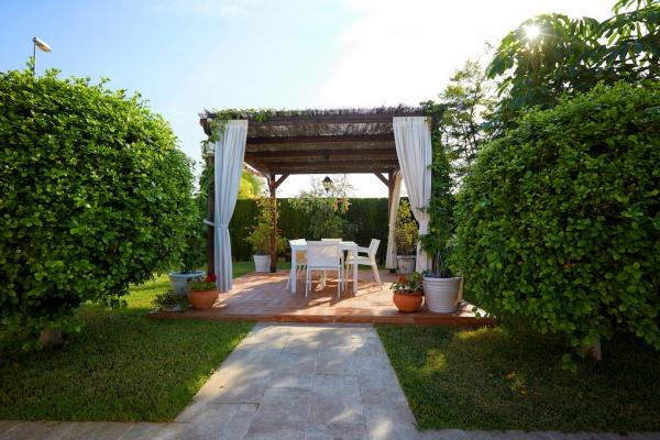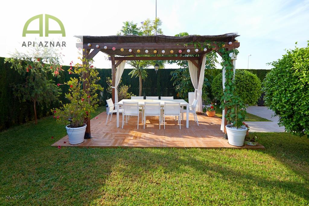 Ulkona on hyvin hoidettu puutarha automaattisella kastelulla, yksityinen 5x10 metrin suolavesiallas, 700 litran dieselsäiliö ja yksityinen pysäköinti puisella pergola-anulla.