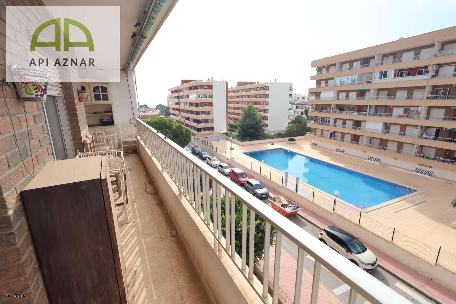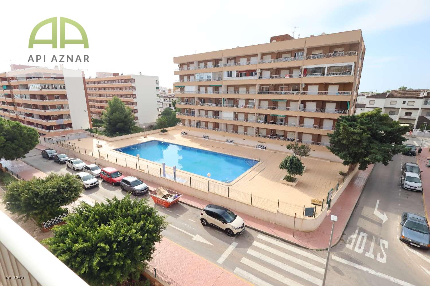 Jasny apartament na czwartym piętrze z windą, od strony południowej i położony naprzeciwko basenu komunalnego, zaledwie 300 metrów od plaży.