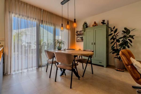 З площею 138 м², будинок пропонує сучасне, елегантне та дуже функціональне планування, що складається з 3 спалень і 3 ванних кімнат: головної спальні з власною ванною кімнатою, додаткової ванної кімнати та гостьового туалету. Відкрита кухня, повністю обладнана та з високоякісними матеріалами, ідеально поєднується з вітальнею, створюючи просторий, яскравий і гостинний простір, ідеальний для сімейних зустрічей або з друзями.