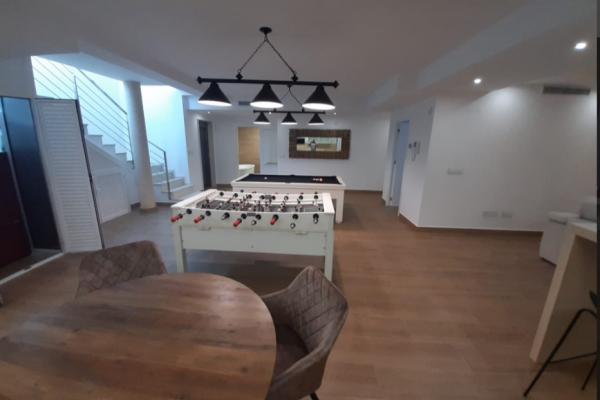 Підвал спроєктований для відпочинку та розваг, має ігрову кімнату, простір для святкувань і приватну кінозалу. Зовні дві великі тераси дозволяють насолодитися неперевершеними панорамними краєвидами. Приватний сад містить вражаючий басейн із водоспадом і джакузі, створюючи справжню оазис відпочинку.