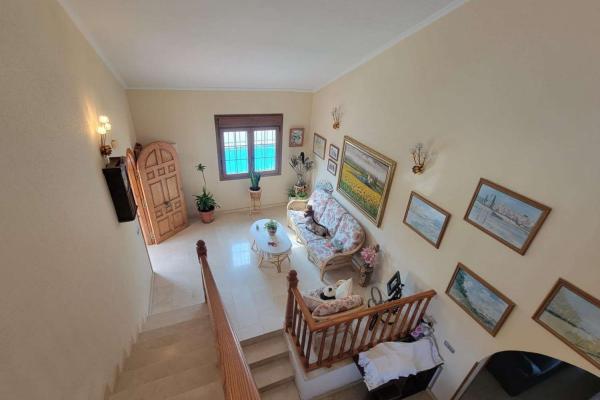 楼上设有优雅的大厅、三间双人卧室(其中一间设有阳台和私人露台)、一间带意大利淋浴的设施齐全的浴室以及一个带水槽和洗衣机的额外露台。从这里您可以进入日光浴室,那里可以欣赏到一览无余的阳光明媚的景色。