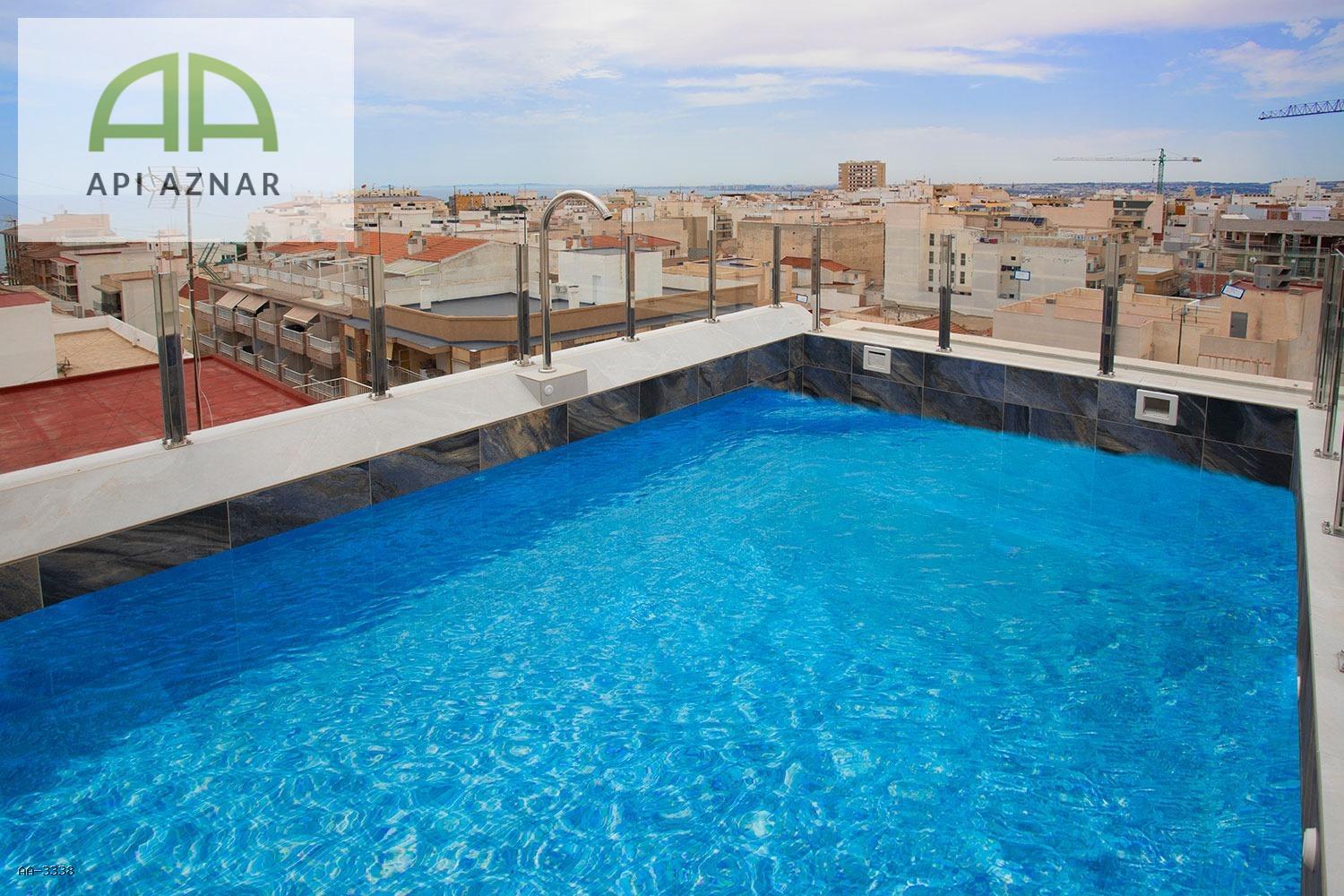 独特的全新公寓,现代风格,位于托雷维耶哈最受欢迎的地区之一的优雅住宅区,设有公共游泳池和日光浴室,可欣赏壮丽的海景,距离 Playa del Cura 和 Paseo Marítimo 仅几分钟步行路程。